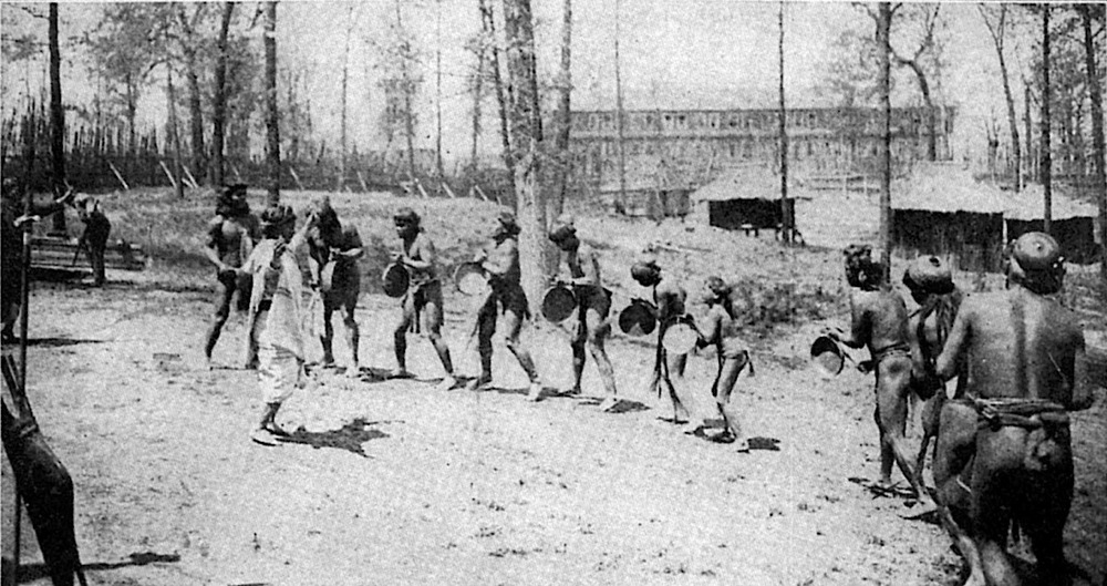 The exhibition of tribal groups brings to mind the mechanical Indian village that can be seen from a paddle wheeler in Disneyland’s Frontierland. But in this case, the “Indians” were real, brought over from the remotest of villages 12,000 miles away.