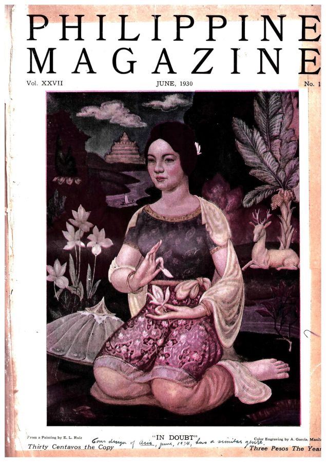 My curiosity was piqued by this June 1930 issue of Philippine Magazine with a cover painting deviating from the usual Filipino scenery or subject.