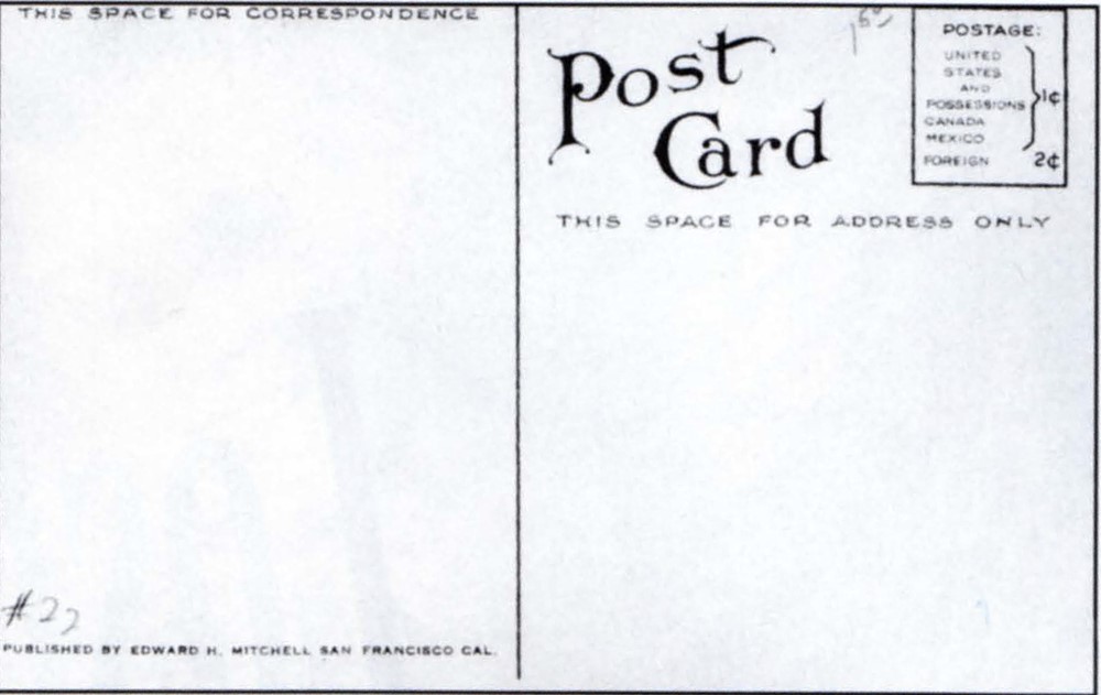 In the early years, post office regulations reserved one side exclusively for the address and the other for the picture, with marginal space for a written message. This was soon improved upon in 1907 when cards were printed with divided backs, one section for the address and one for a message.