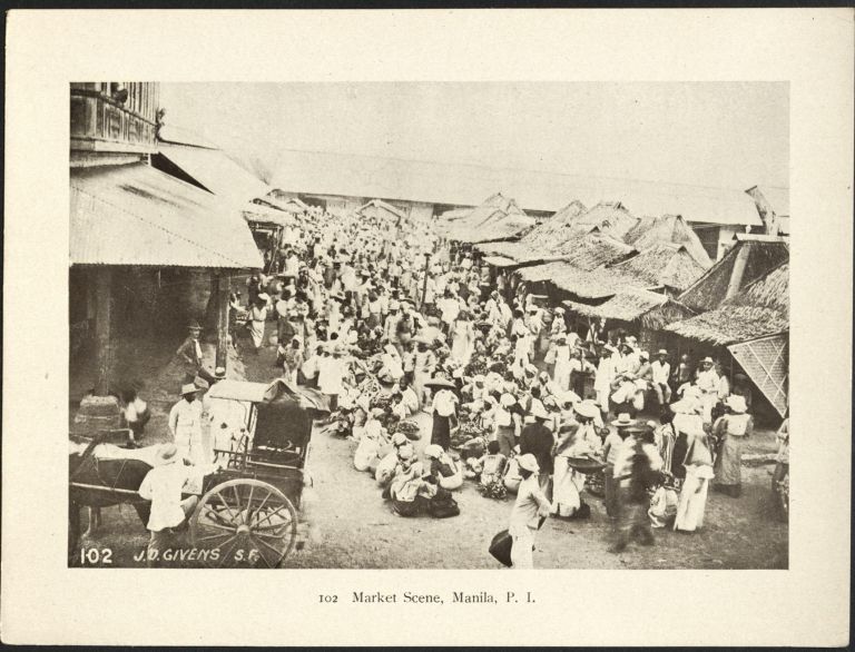 Subject: Buyers and sellers at a busy produce market in Manila. Givens was the post photographer at the Presidio of San Francisco starting in 1899. In 1900 he traveled to the Philippines t