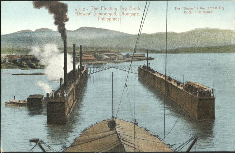 Subject: USS Dewey (YFD-1) was a floating dry dock built for the U. S. Navy in 1905. The drydock was towed to her station in the Philippines via the Suez Canal in 1906 and remained there until scuttle