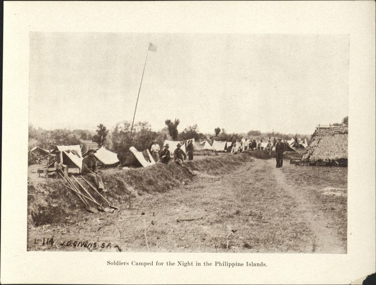 114. Soldiers camped for the night in the Philippine Islands.