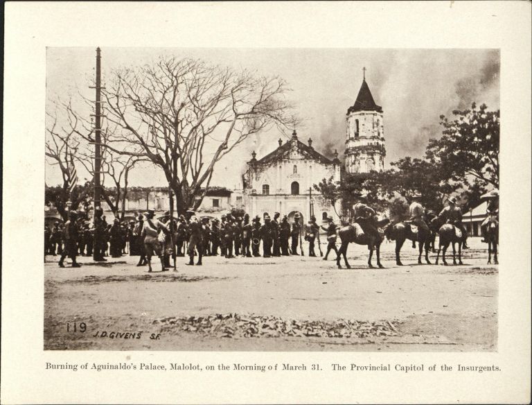 119. Burning of Aguinaldo's Palace, Malolot [Malolos], on the morning of March 31. The provisional capitol of the insurgents.
