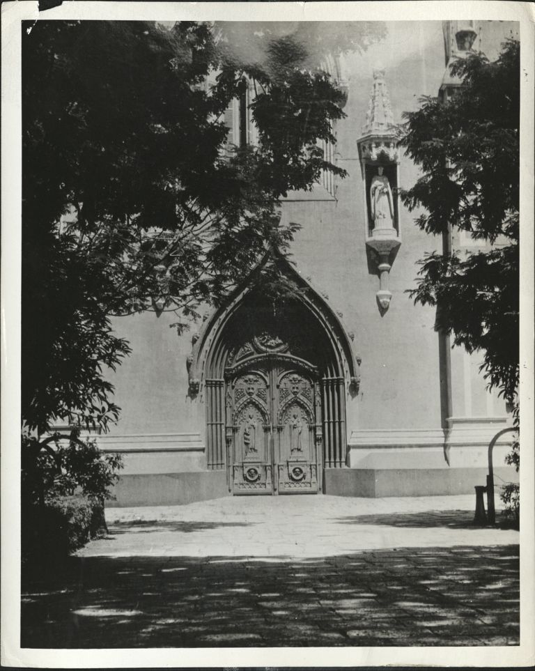 Subject: Main doorway and ornamentation of Santo Domingo Church in Intramuros. The church was destroyed in December 1941 at the outbreak of World War II and was later reconstructed in Quezon City. (Se