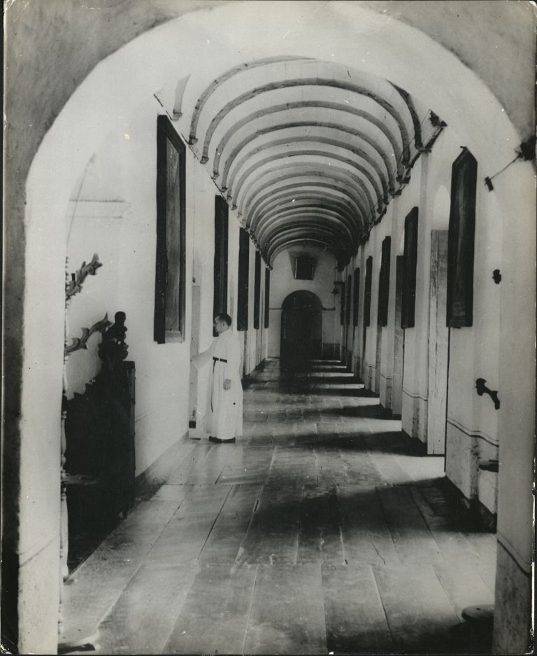 Subject: A monk in a hallway of a monastery in Cebu. There are a number of monasteries in Cebu, although some are quite new; it's unclear which one is depicted here.