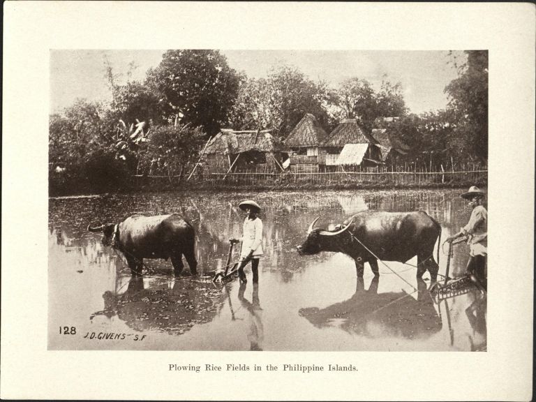 128. Plowing rice fields in the Philippine Islands.