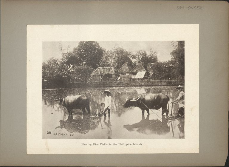 128. Plowing rice fields in the Philippine Islands.