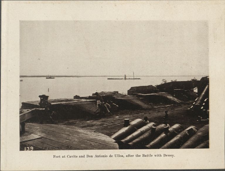 Subject: Cannons at Fort San Felipe in Cavite look out on the sunken Spanish cruiser "Don Antonio de Ulloa" in the bay. Givens was the post photographer at the Presidio of