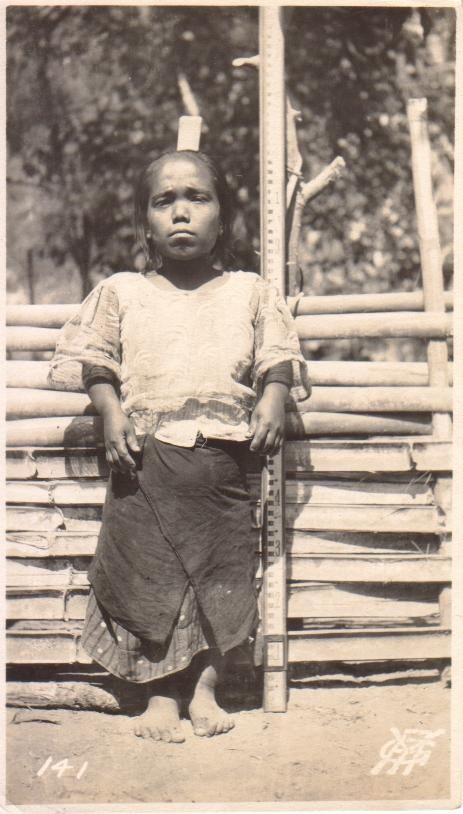 141. [Untitled - A short Filipina stands next to a measuring stick].