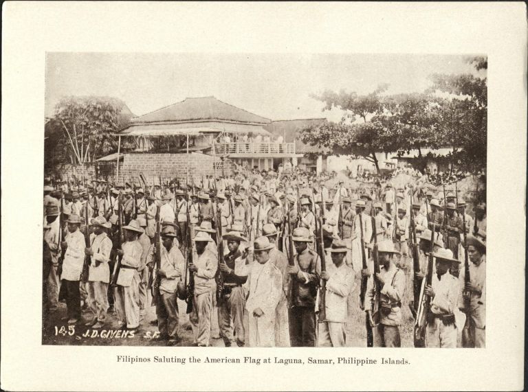 145. Filipinos saluting the American flag at Laguna [Laguan], Samar, Philippine Islands.