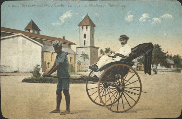 A 162 � Rickshaw and Moro coolie, Zamboanga, Mindanao, Philippines.