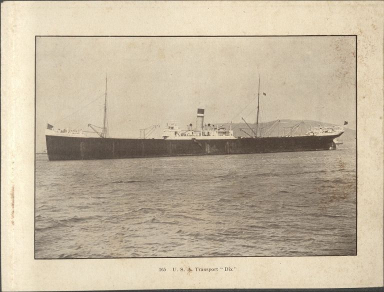Subject: U.S.A.T. Dix lies at anchor in a harbor, possibly Hawaii. Scattered newspaper reports state the Dix sailed to China around the time of the Boxer Rebellion, she wa