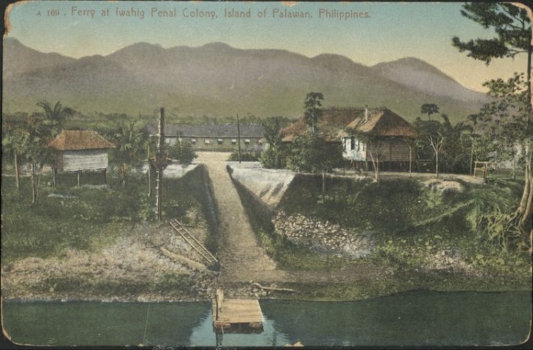 Subject: Ferry landing at the Iwahig Penal Colony in Puerto Princesa, Palawan and prison buildings beyond.
