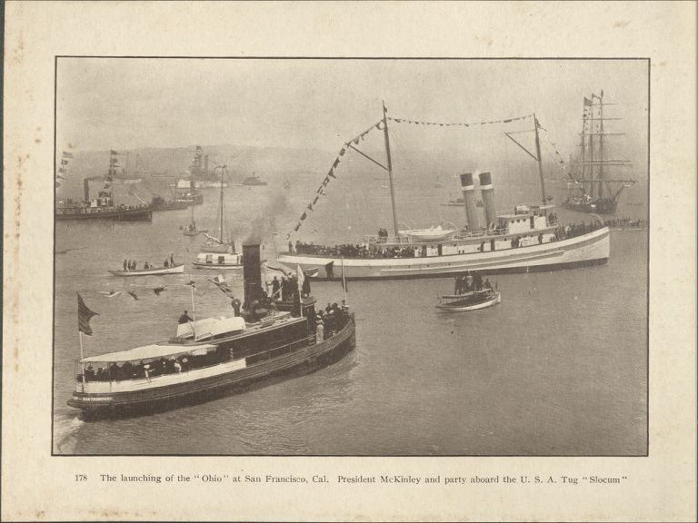 178. The launching of the "Ohio" at San Francisco, Cal. President McKinley and party aboard the U.S.A. Tug "Slocum."