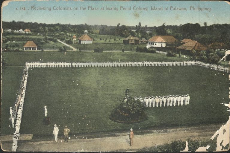 A 184 � Reviewing Colonists on the Plaza at Iwahig Penal Colony, Island of Palawan, Philippines.