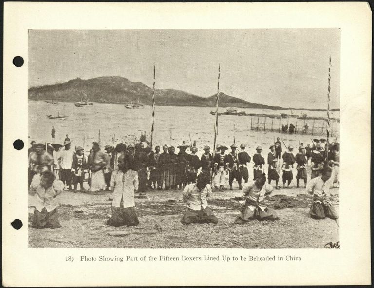 187. Photo showing part of the fifteen Boxers lined up to be beheaded in China.