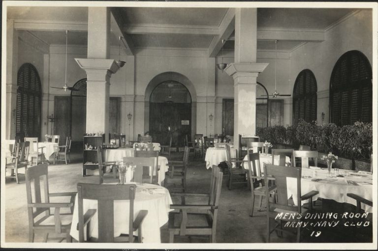 Subject: Apparently men and women dined separately in the early days of the Army & Navy Club in Manila. Founded in 1898, this building was opened in 1911, originally a social club for U.S. Army