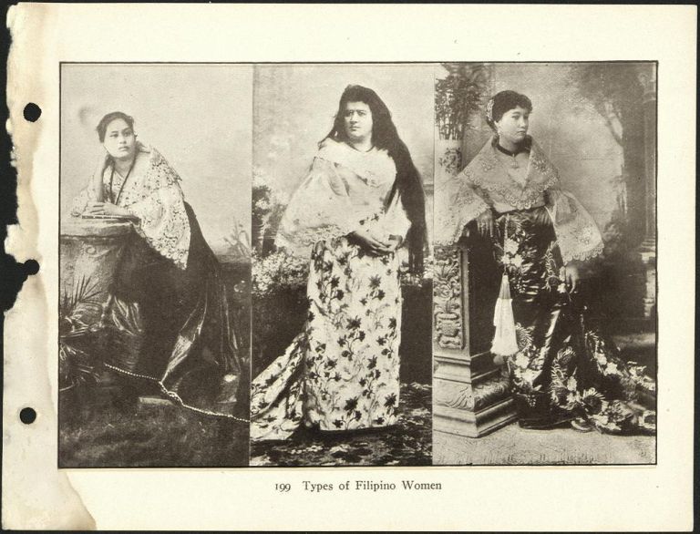 Subject: Series of three studio portraits of mestiza-looking Filipino women in formal dress. Givens was the post photographer at the Presidio of San Francisco starting in 1899. In 1900 he