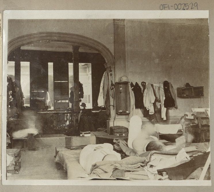 Subject: Intterior view of quarters or barracks used by the South Dakota Volunteers - a large residence. Not sure if this was taken in South Dakota or the Philippines. Lieut. Munson M. Z. Guthrie was