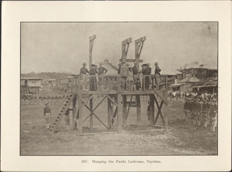 Subject: "Three 'Ladrones' (bandits) are about to be hanged in Tayabas Province (now Quezon). The Brigandage Act of 1902 interpreted all acts of armed resistance to American rule as bandit