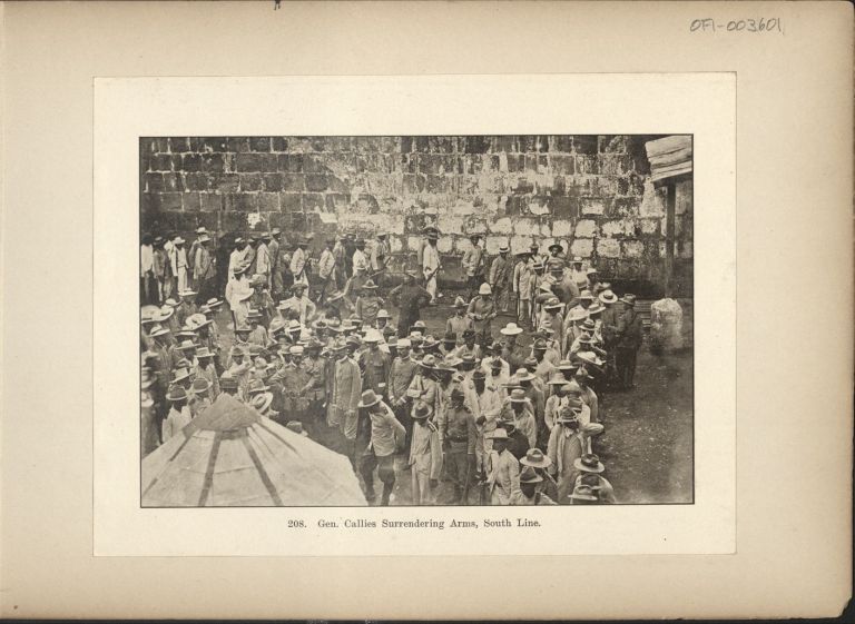 Subject: General Cailles surrendered with 600 of his men and 386 rifles on June 24, 1901 in the courtyard of Santa Cruz Church, Laguna Province. ("Cailles' troops take the