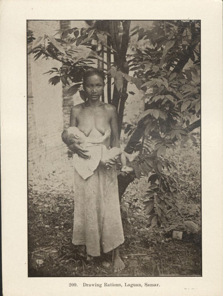 Subject: A Filipino woman with a long skirt and no top poses while breastfeeding her baby. See also OFI-002987. Givens was the post photographer at the Presidio of San Francisco starting i