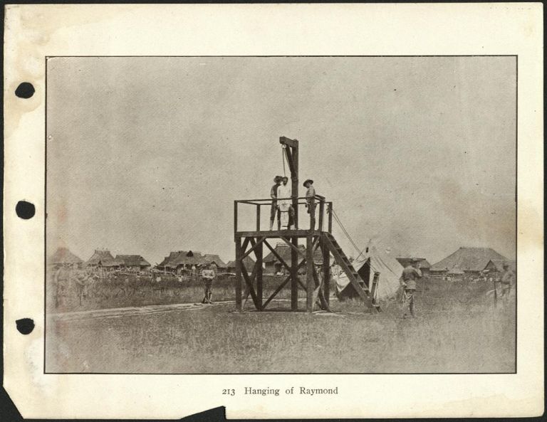 Subject: Pvt. George A. Raymond was hanged Sept. 27, 1901 in the Angeles City town square, having been found guilty of murder, robbery, rape, and desertion. At the last moment he asked to