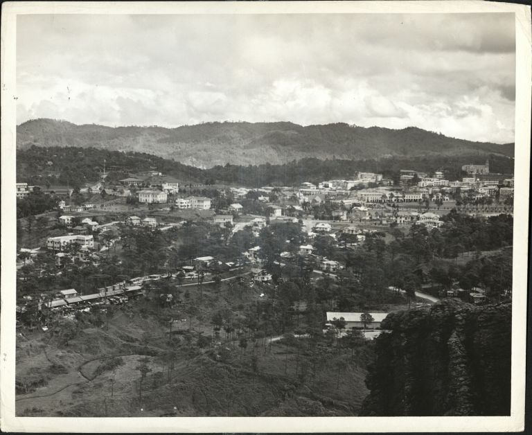 Subject: Wonderful historic view looking north of Baguio likely pre-WWII. The lagoon in Burnham Park is visible extreme left center, with the Baguio Cathedral on the hill directly above.