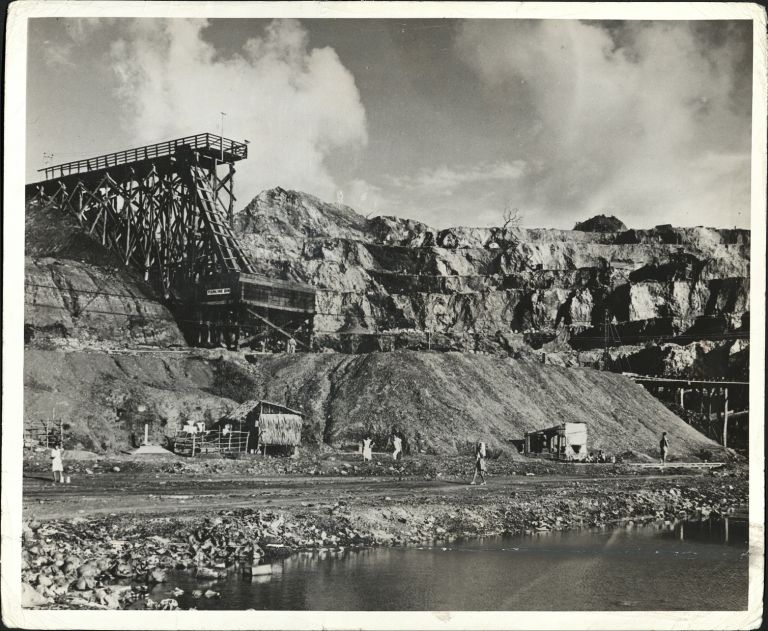 Subject: Excavation at a gold-mining operation. Marsman & Co. began gold mining in Baguio in the 1920s and in 1933 initiated a large-scale mining development project in the Paracale-Mamburao area in B
