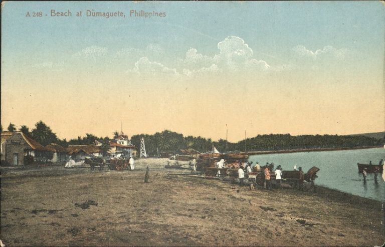 Subject: Carts and wagons carrying passengers and cargo on beachfront in Dumaguete.