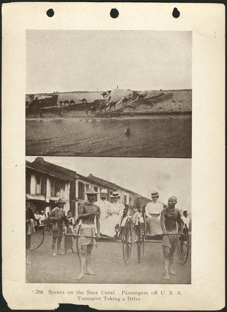 266. Scenes on the Suez Canal. Passengers off U.S.A. Transport taking a drive.