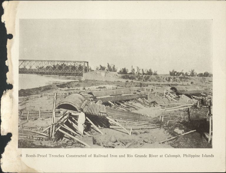 278. Bomb-proof trenches constructed of railroad iron and Rio Grande River at Calumpit, Philippine Islands.