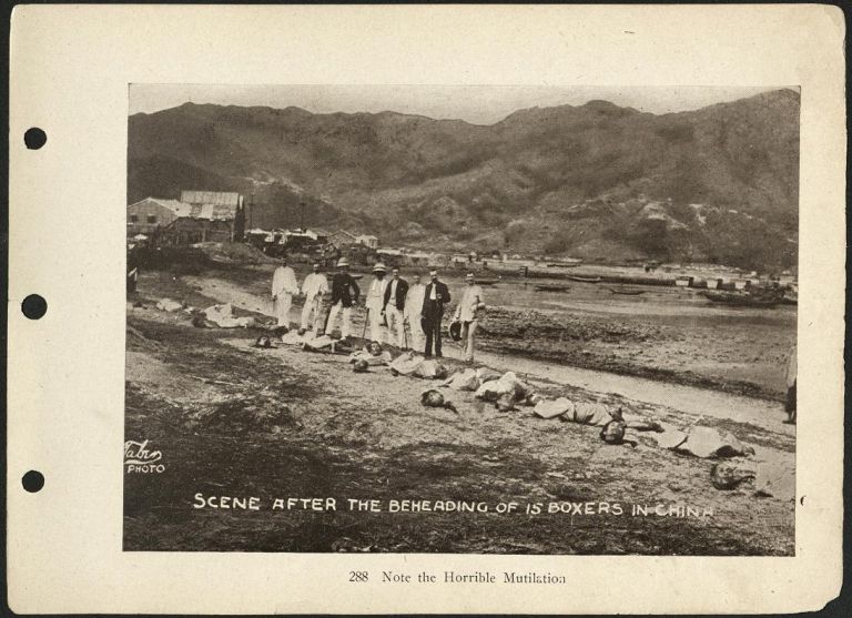 288. Note the horrible mutilation. (Scene after the beheading of 15 Boxers in China).