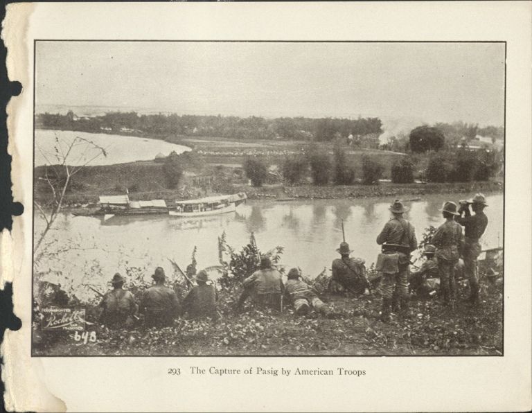 Subject: U.S. soldiers at ease on a bluff overlooking the Pasig River. The scenery below this company's actions led Givens to include several scenes of their battle in this series. See OFI