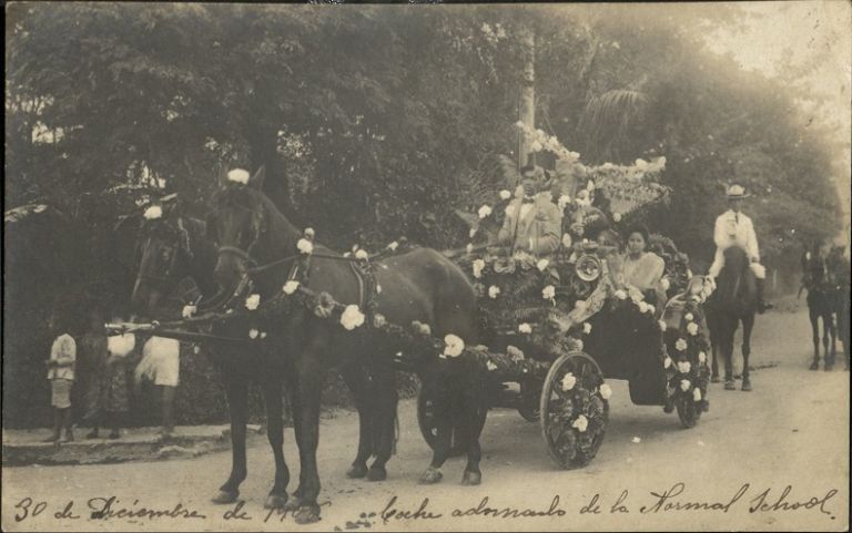 30 de Diciembre de 1908. Coche adornado [decorated coach] de la Normal School.