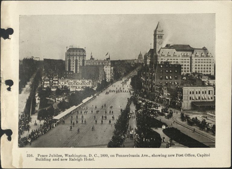 316. Peace Jubilee, Washington, D. C., 1899, on Pennsylvania Ave., showing new Post Office, Capitol Building, and new Raleigh Hotel.