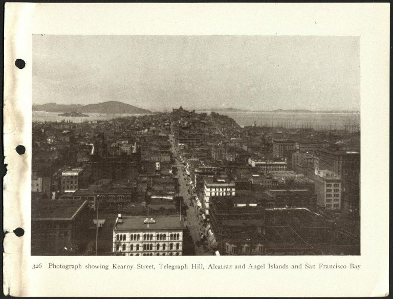 326. Photograph showing Kearny Street, Telegraph Hill, Alcatraz and Angel Islands and San Francisco Bay.