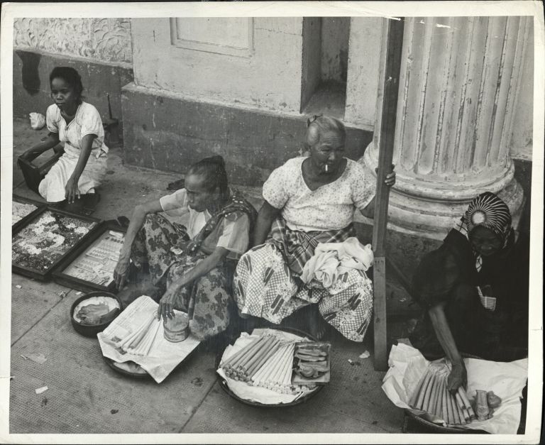 334. PHILIPPINES: Street vendors in front of a church in Manila display candles, rosaries, etc., and are themselves devout Catholics.