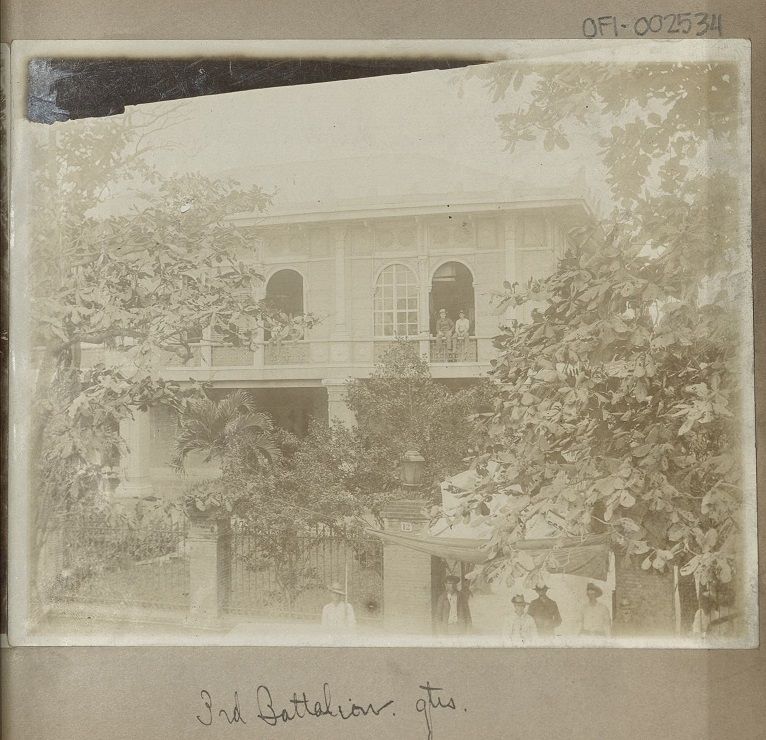 Subject: Exterior view of quarters or barracks used by the South Dakota Volunteers - a large residence. Not sure if this was taken in South Dakota or the Philippines. Lieut. Munson M. Z. Guthrie was a