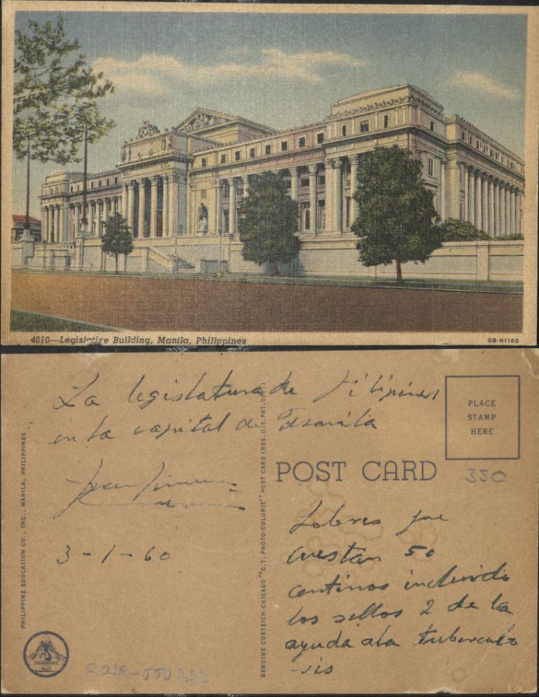 Subject: The Old Legislative Building, originally designed to house the National Library, was inaugurated in 1926 and destroyed in 1945 (subsequently rebuilt). It is located along Padre Bur