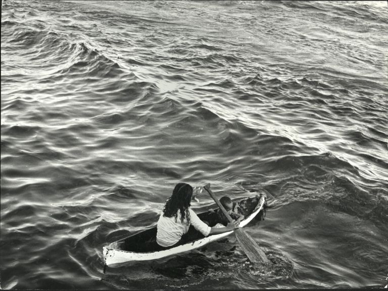 49. PHILIPPINES: Island of Mindanao. Mother with child in a small boat off Zamboanga. Sammer 9980.