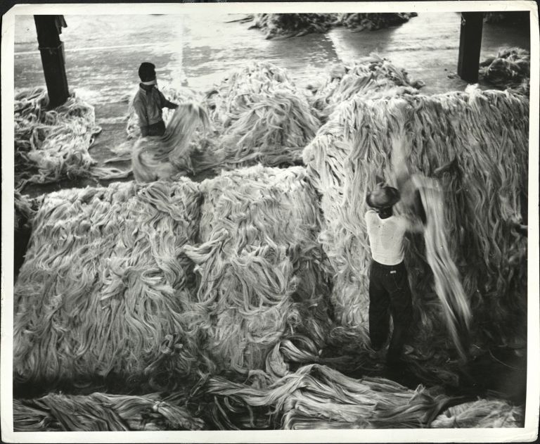 52. PHILIPPINES: Hemp, abaca, being sorted at Otah Plantation, Davao.