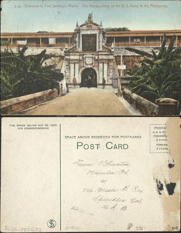 A 53 � Entrance to Fort Santiago, Manila. The Headquarters of the U. S. Army in the Philippines.