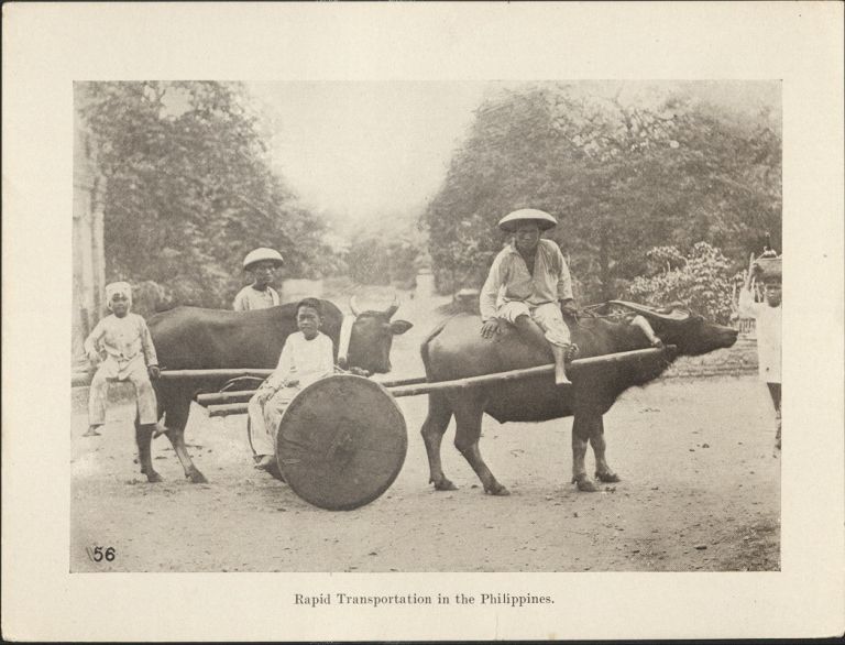 Subject: It may not be rapid, but it beats walking. Filipinos ride in carts pulled by carabaos on a Philippine road. Givens was the post photographer at the Presidio of San Francisco start