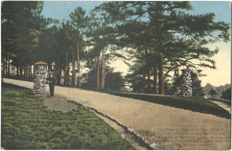A 73 � Road to Camp John Hay, the U.S. Army Post; situated among the Pine clad mountains of Northern Luzon. At this altitude woolen clothing is worn with comfort the year around.