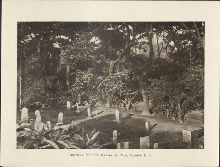 Subject: Graves of fallen U.S. soldiers in the Philippine-American War among the landscaped grounds at Paco Cemetery (Paco Park), Manila. Givens was the post photographer at the Presidio o