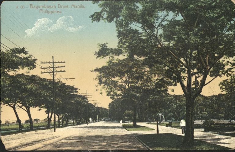 Subject: Bagumbayan Drive (now Padre Burgos Ave.) with trees and sidewalks.
