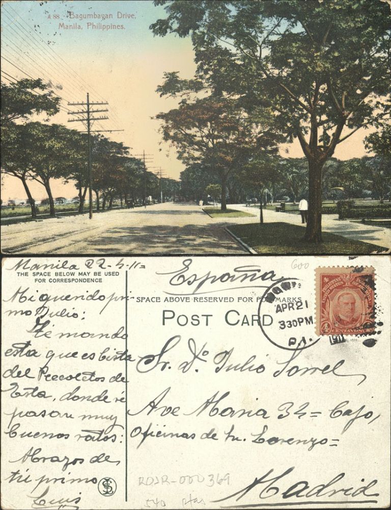Subject: Bagumbayan Drive (now Padre Burgos Ave.) with trees and sidewalks.