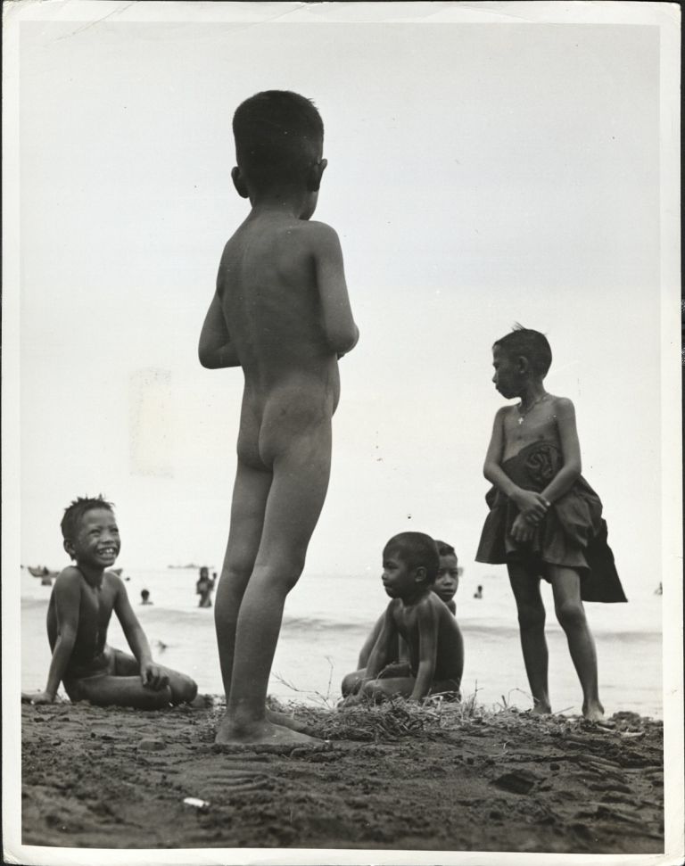 9. PHILIPPINES - Children. Manila children frolic along the beach. J-1436.