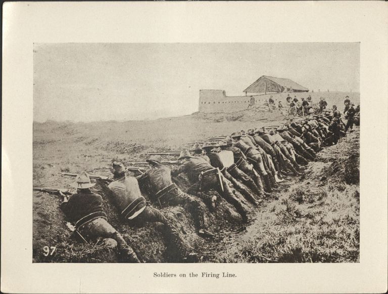 Subject: U.S. soldiers fire from trenches beside a fortification in Caloocan near Manila - this is the "�ld Spanish blockhouse" in La Loma (see OFI-000958 and ROJR-001641) - during the Phi